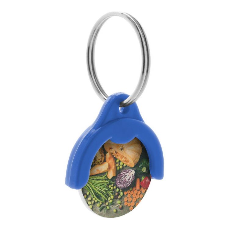 Schlüsselanhänger mit Einkaufswagen-Chip aus Kunststoff. Der Chip wird einseitig, vollflächig bedruckt. Preis inkl. UV LED Digitaldruck. Mindestmenge: 200 Stück.