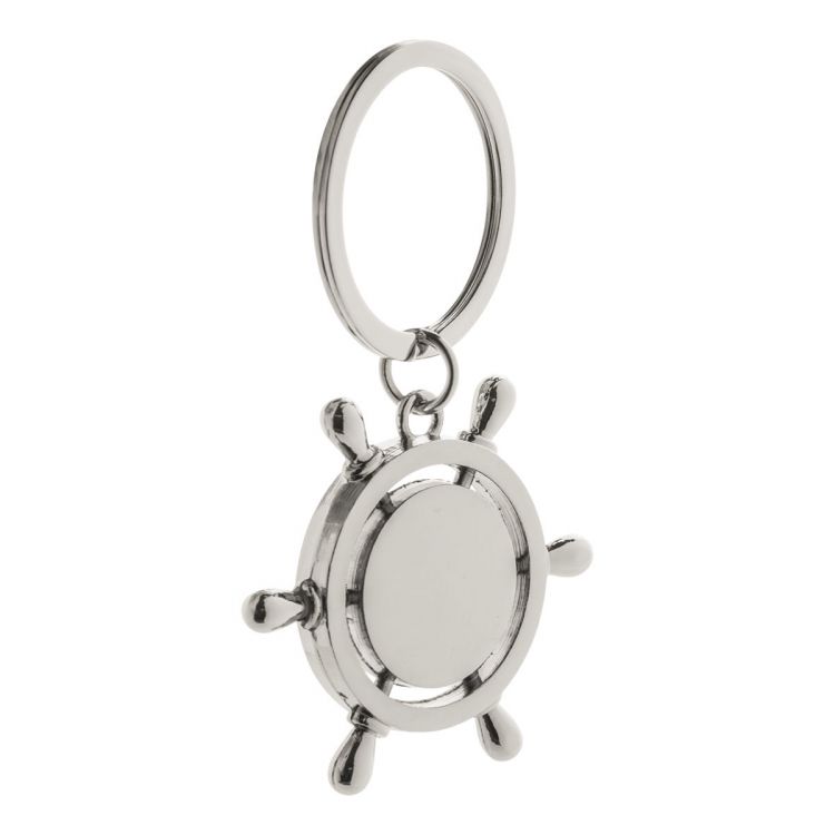 Metall-Schlüsselanhänger in Steuerradform. Einzeln in schwarzer Geschenkbox