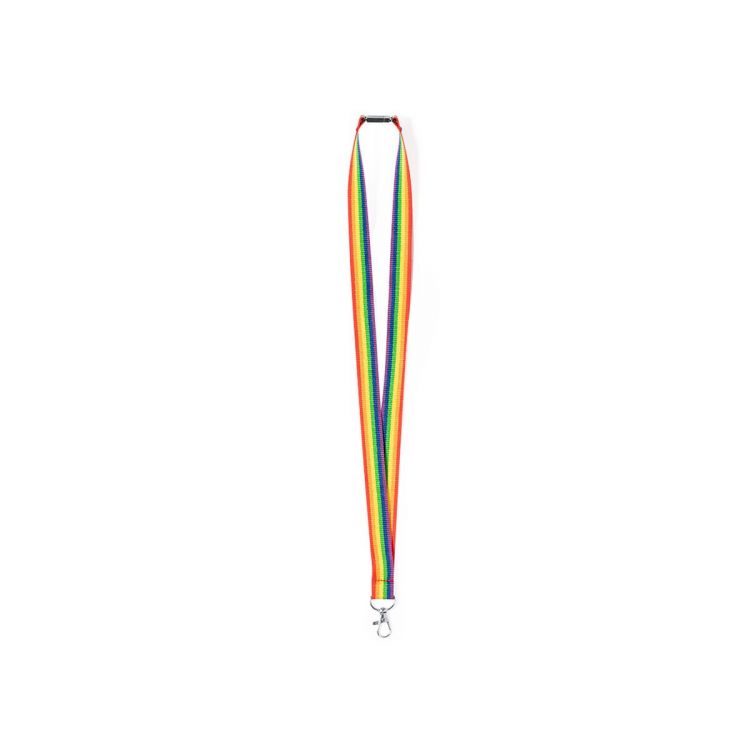 Mehrfarbiges Regenbogen-Lanyard aus weichem Polyester. Mit Drehhaken aus Metall und Nackensicherung. Ein echter Stolz des Schlüsselbandes. (mehrfarbig farbe)