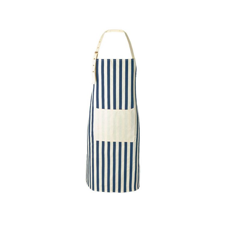 Schürze der Linie Natur aus Bio-Baumwolle, die mit nachhaltigen Methoden angebaut wird, ohne Insektizide, Düngemittel oder andere Chemikalien, wodurch die Pflege der Umwelt begünstigt wird. Innovatives, vertikal gestreiftes Design, mit naturfarbener Fronttasche, die bis unter das Knie reicht. Verstellbar, mit Riemen an Hals und Taille. Unverwechselbares Etikett aus Bio-Baumwolle.