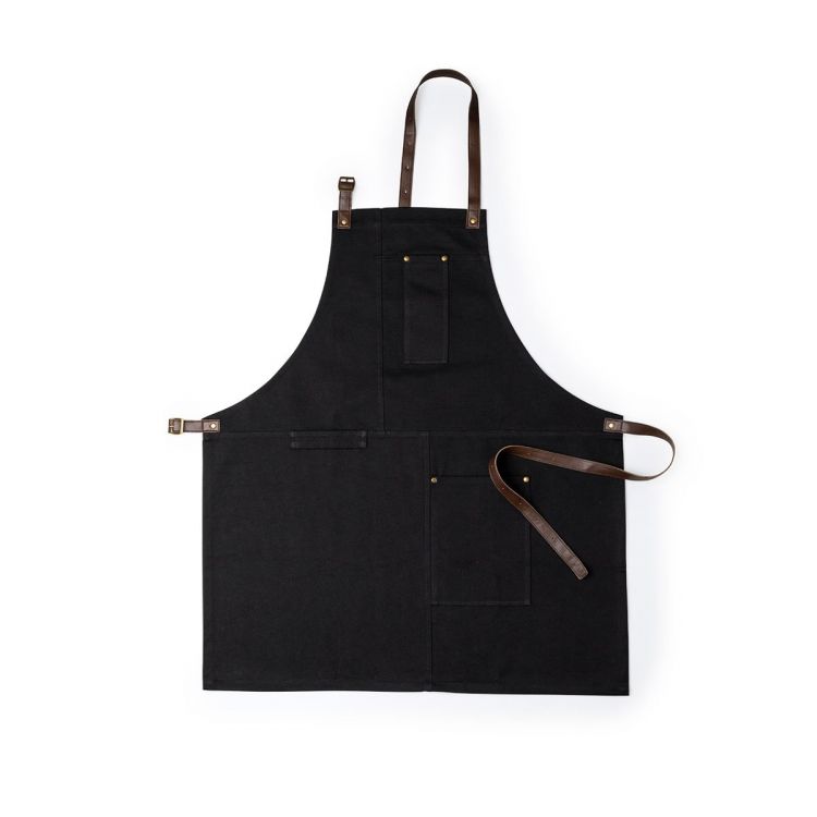 Profi-Schürze in hoher Qualität, aus widerstandsfähigem Canvas-Material aus Baumwolle mit 340 g/m2. Unter dem Knie sitzend, mit Hals- und Hüftgurten aus widerstandsfähigem PU-Leder, mit Schnallenverstellung und verstärkt durch Metallnieten. Inklusive vieler Taschen für mehrere Utensilien, mit verstärkten Nähten.