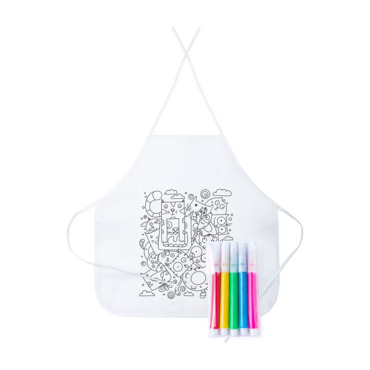 Schürze für Kinder aus Non-Woven mit 5 Filzstiften zum Ausmalen