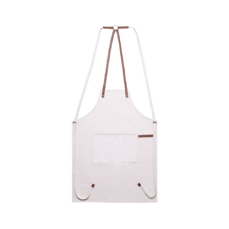 Hochwertige Schürze aus strapazierfähigem Canvas-Material aus Baumwolle, 340g/m2, mit verstärkten Nähten. Unterhalb des Knies geschnitten, mit widerstandsfähigen Kunstlederriemen und dreifacher Verstellung: Kragen, Rücken und Taille. Mit Vordertasche, Zubehör aus Kunstleder und Metallnieten zur Verstärkung. (natürlich farbe)