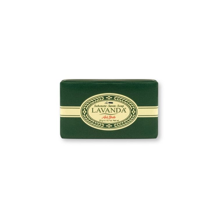 Seife mit pflanzlicher Seifenbasis und Lavendelduft, mit einer weichen Textur, die die Haut parfümiert lässt. Ihr kleines Format ist ideal für den Transport in der Sporttasche oder auf Reisen. Traditionell in Portugal hergestellt. Inhalt 20 g. Klassische Verpackung, die das ursprüngliche Design beibehält, mit grünem Hintergrund und kleinen Grafiken, die Lavendelblüten darstellen, in grün farbe