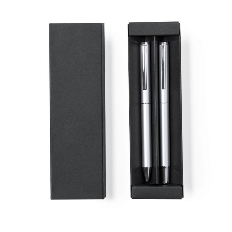 Kugelschreiber- und Rollerball-Set aus recyceltem Aluminium. Kugelschreiber mit Drehmechanik und Tintenroller mit Kappe, beide mit einem Metallclip ausgestattet. Beide verfügen über blaue Tinte und einen glänzenden Schaft mit einem Logo für recyceltes Aluminium. Präsentiert in einer individuellen Kraftbox.Recyceltes Aluminium ist ein Material mit nahezu unendlichen Recyclingmöglichkeiten, das seine ursprünglichen Eigenschaften nicht verliert und dabei weniger Energie verbraucht.Die GRS-Zertifizierung (Global Recycled Standard) garantiert, dass das für die Herstellung des Produkts verwendete Material aus recyceltem Material stammt. (natürlich farbe)
