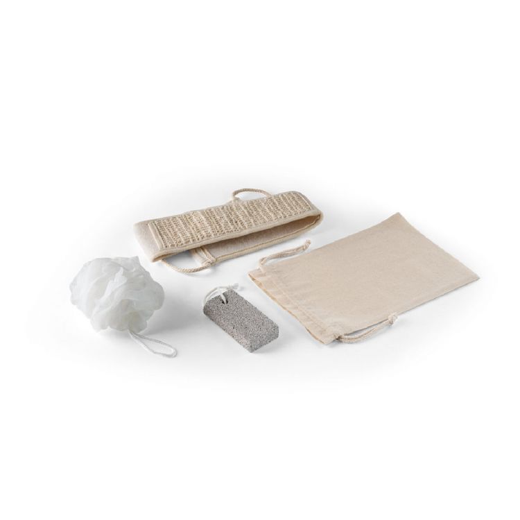 Spa-Set bestehend aus: Badeschwamm aus PET (80% recycelt) und PET mit Polyestergriff, Bimsstein mit Polyestergriff und Rückenschrubber aus Baumwolle und Jute mit Baumwollgriffe. Produkte die in Kits enthalten sind, werden separat geliefert, wenn sie nicht veredelt sind. Da das Produkt aus natürlichen Materialien hergestellt wird, können Farbe des Produkts sowie das Druckergebnis von Produkt zu Produkt unterschiedlich sein, in natürlich farbe
