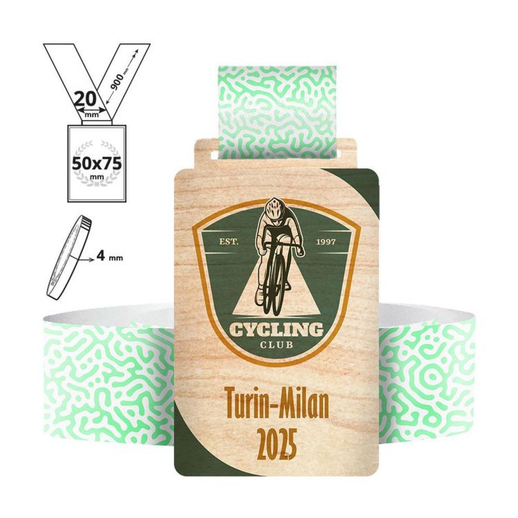 Rechteckige Medaille mit Vollfarbdruck auf der Vorderseite und mit einem vollständig personalisierbaren 20x900mm Lanyardd. Dank der speziellen Verarbeitung - Lasergravur und UV-Vollfarbdruck auf der gesamten Oberfläche - können wir jede vom Kunden gewünschte Individualisierung realisieren.