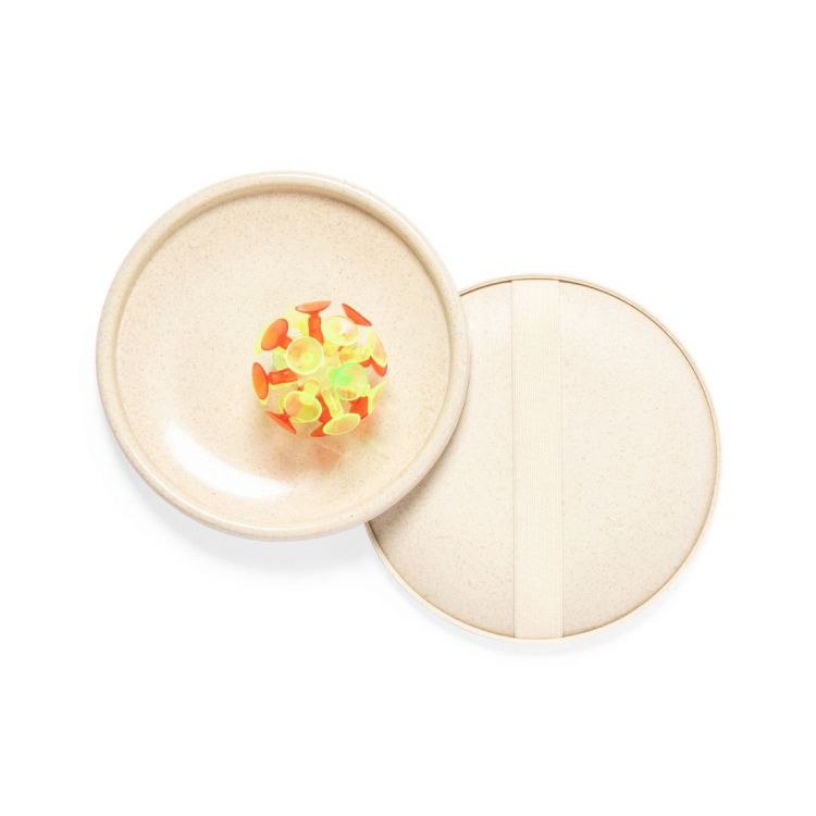 Satz Ball- und Scheibenpaddel. Inklusive Ball mit Saugnäpfen und flachen Scheibenpaddeln, aus widerstandsfähigem Weizenstroh, mit passendem Gummiband für die Hand. Weizenstroh fördert die Nutzung natürlicher Rohstoffe und reduziert den Schadstoffausstoß. (natürlich farbe)