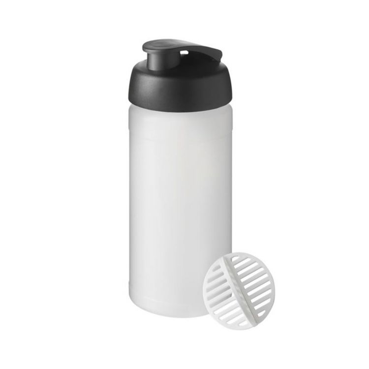 Einwandige Sportflasche mit Shakerball zum Mixen von Proteinshakes. Luftdichter Deckel mit Klappverschluss. 500ml Fassungsvermögen. Hergestellt in Großbritannien. HDPE-Kunststoff, PP-Kunststoff, PP-Kunststoff.