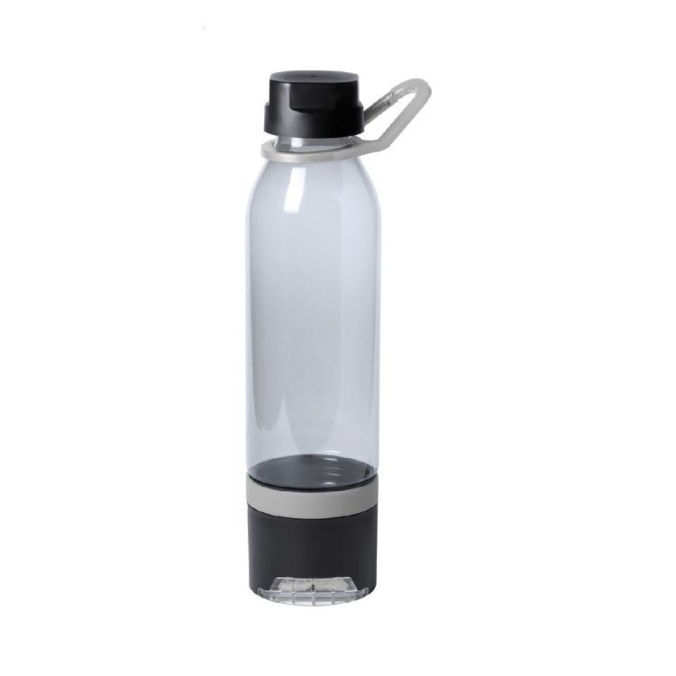 Multifunktions-Sportflasche aus Kunststoff mit Kühltuch (390 g/m²) im Bodenfach und ausziehbarem Handyhalter. Im Geschenkkarton. 650 ml. Nicht für kohlensäurehaltige Getränke geeignet.