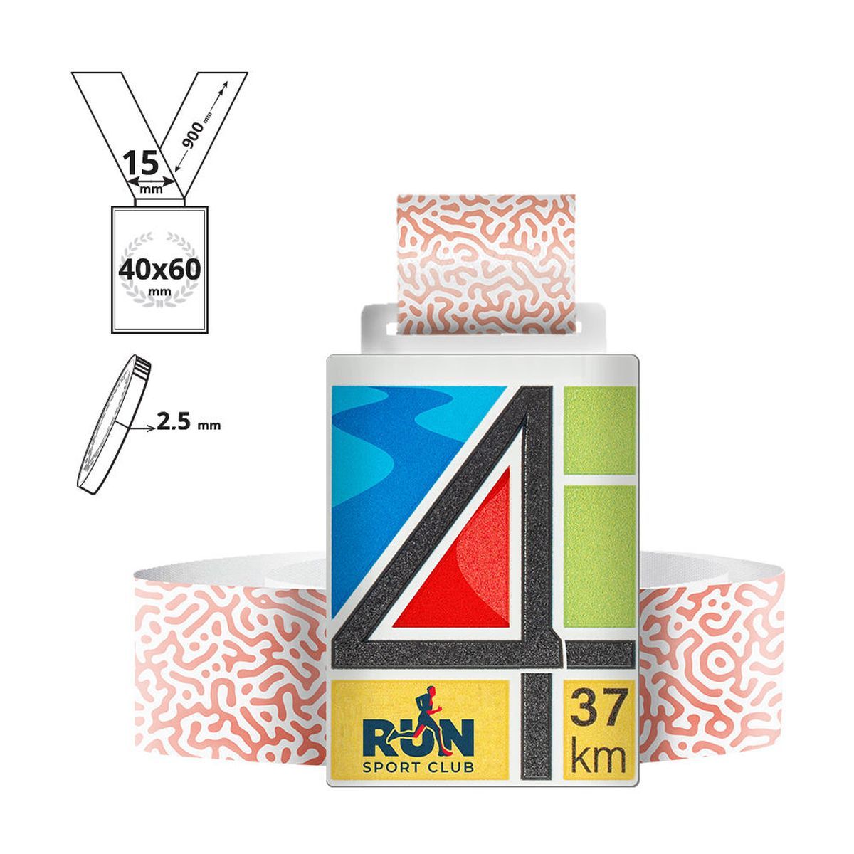 Rechteckige Medaille aus vollfarbig bedrucktem Stahl auf der Vorderseite und mit einem vollständig anpassbaren 15x 900 mm großen Schlüsselband. Dank der speziellen Verarbeitung - Lasergravur und UV-Vollfarbdruck auf der gesamten Oberfläche - können wir jede vom Kunden gewünschte Individualisierung realisieren. Die Rückseite der Medaille ist schwarz eingefärbt.