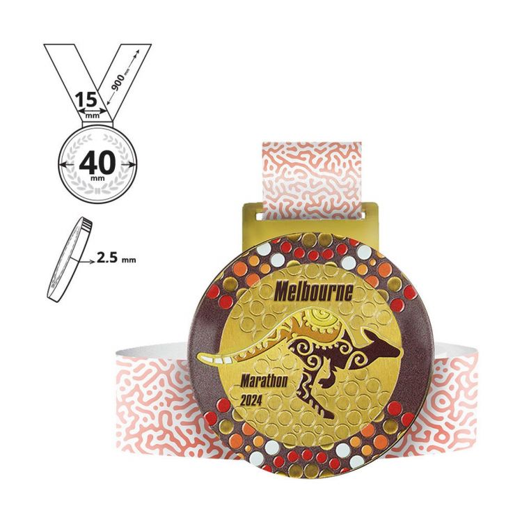 Runde Medaille mit Vollfarbdruck auf der Vorderseite und mit einem vollständig personalisierbaren 15x900mm Lanyard. Dank der speziellen Verarbeitung - Laserschneiden und UV-Vollfarbdruck auf der gesamten Oberfläche - können wir jede vom Kunden gewünschte Individualisierung realisieren. Die Rückseite der Medaille ist schwarz eingefärbt.