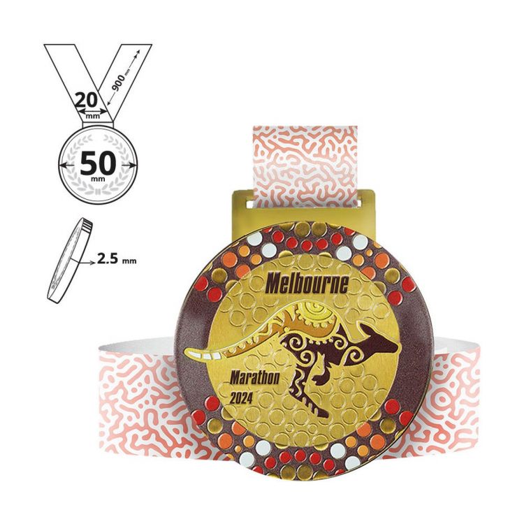 Runde Medaille mit Vollfarbdruck auf der Vorderseite und mit einem vollständig personalisierbaren 20x900mm Lanyard. Dank der speziellen Verarbeitung - Lasergravur und UV-Vollfarbdruck auf der gesamten Oberfläche - können wir jede vom Kunden gewünschte Personalisierung realisieren. Die Rückseite der Medaille ist schwarz eingefärbt.