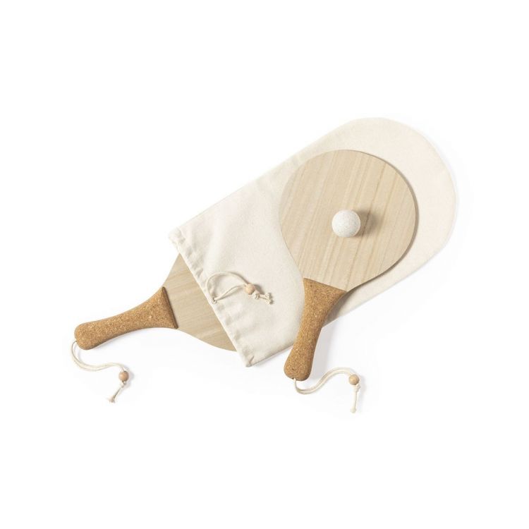 Para der Natur-Strandschaufeln. Aus Holz, mit verstärktem Naturkorkgriff und Handschlaufen mit Versteller. Präsentiert in einem natürlichen Baumwollbeutel mit Kordelzug und Weizenrohrkugel. (natürlich farbe)
