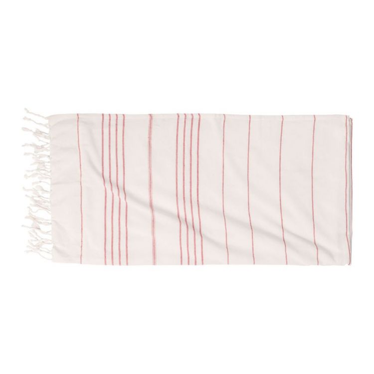Zweifarbiges Pareo-Strandtuch aus Polycotton. Gemisch aus 50% Bio-Baumwolle und 50% Polyester, 280 g/m², in rot farbe