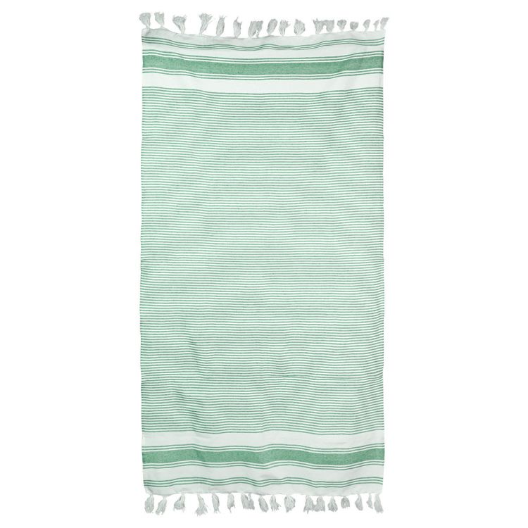 Zweifarbig gestreiftes Pareo Strandtuch aus 70% Baumwolle und 30% Polyester, 210 g/m²).