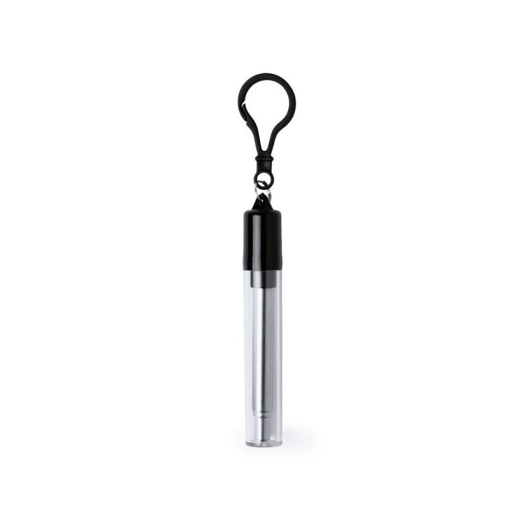 Wiederverwendbarer und ausziehbarer Strohhalm aus Edelstahl mit Silikonspitze. Inklusive Reinigungszubehör und präsentiert in einem transparenten Koffer mit Tragezubehör.