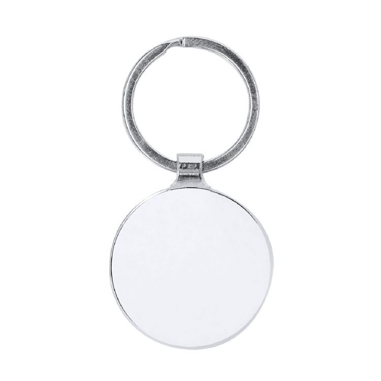 Schlüsselanhänger mit Metallplattendesign und Metallring. Die Platte enthält eine Oberfläche, die ideal für Sublimation ist.