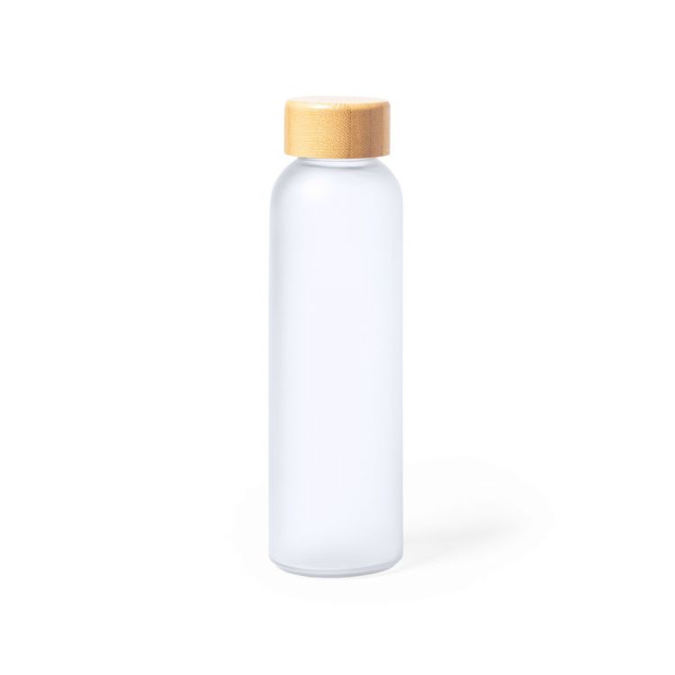 Flasche aus der Nature-Linie mit einem Fassungsvermögen von 500 ml, speziell hergestellt für den Sublimationsdruck. Körper aus Glas, mit Schraubverschluss aus Bambus und BPA-frei. Präsentiert in einer individuellen Ökodesign-Box. (natürlich farbe)