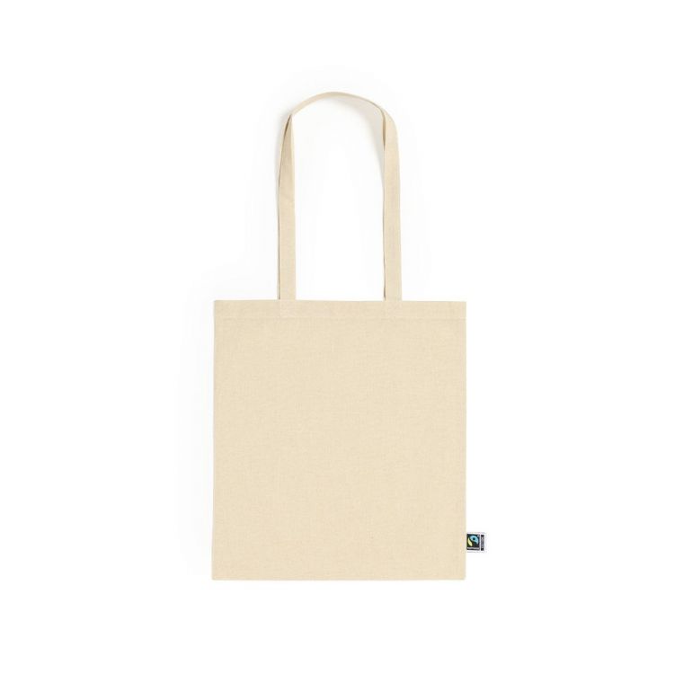 Linie "Natur" Tasche aus Baumwolle 180g/m2 in einem natürlichen Farbton. Mit Fairtrade-Zertifizierung, eine Alternative zum konventionellen Handelssystem, die die Entwicklung der Völker und den Kampf gegen die Armut verfolgt. Genäht, mit 70 cm langen Griffen und bis zu 7 kg belastbar. Inklusive Fairtrade-Label and der Tasche und Anhänger aus recyceltem Karton. (natürlich farbe)
