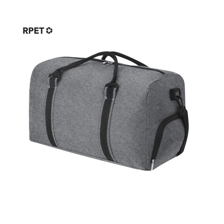 Tasche aus 600D RPET-Polyester. Sie hat drei funktionale Fächer: ein geräumiges Hauptfach mit Reißverschluss, eine seitliche Tasche mit Reißverschluss und eine Fußtasche mit Doppelreißverschluss, ideal für Schuhe. Inklusive verstellbarem Schultergurt, verstärkten Handgriffen mit Metallnieten und eleganten silbernen Details. Das RPET-Material wird aus recyceltem Kunststoff hergestellt, um die Wiederverwendung von Plastikabfällen zu fördern und zur Nachhaltigkeit des Planeten beizutragen.