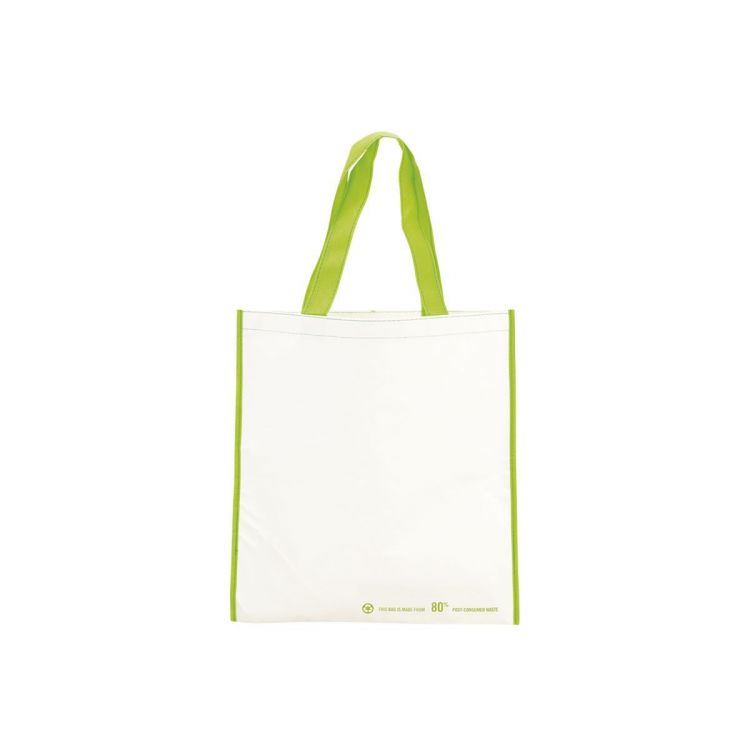 Tasche aus resistentem PET-Recyclingmaterial in einer Vielzahl von lebendigen, glänzenden Farben. Mit 60 cm langen Henkeln in Grün mit Nylonverstärkung, sowie verstärktem Zwickel in Grün und Steppnähten. Belastbar mit bis zu 12 kg.