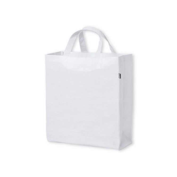 Natur Linie Tasche aus 110g/m2 laminiertem RPET. Genäht, mit Zwickel und kurzen, verstärkten Griffen (35 x 2,5 cm). Erhältlich in einer breiten Farbpalette, Außenetikett mit RPET-Logo. Belastbar bis zu einem Gewicht von 5 kg.Das RPET-Material wird aus recyceltem Kunststoff hergestellt, um die Wiederverwendung von Kunststoffabfällen zu fördern und zur Nachhaltigkeit unseres Planeten beizutragen.