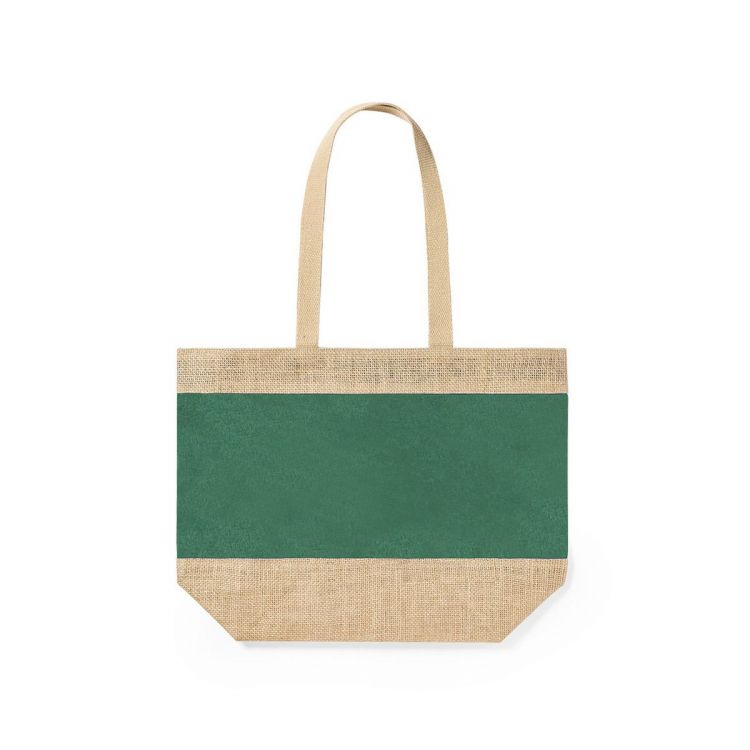 Tasche aus einer robusten Kombination aus laminierter Jute und laminierter Baumwolle mit Griffen aus natürlicher Baumwolle. Genäht mit langen, verstärkten Griffen und in einer breiten Farbpalette erhältlich. Widerstandsfähigkeit bis zu 10 kg Gewicht.