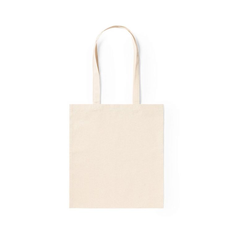 Tasche aus widerstandsfähigem Baumwollmaterial 140g/m2 mit naturfarbener Oberfläche. Mit 70 cm langen Henkeln und Steppnähten. Belastbar bis zu 9 kg Gewicht. (natürlich farbe)