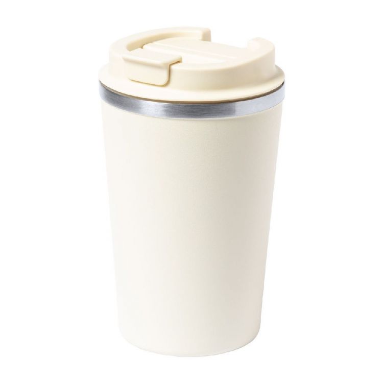 Doppelwandiger Thermobecher aus Edelstahl mit Trinkdeckel. Füllmenge: 350 ml.
