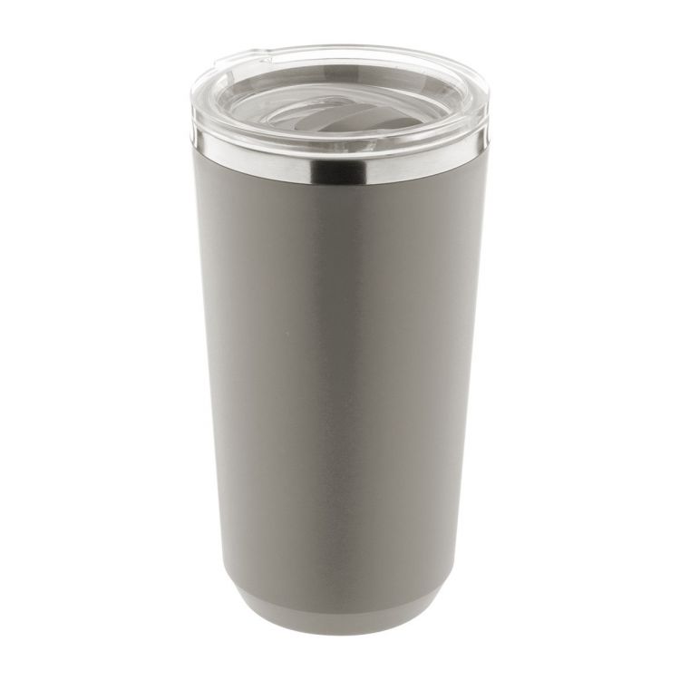 Doppelwandiger Thermobecher aus Edelstahl mit Überzug aus PP-Kunststoff und Trinkdeckel. Füllmenge: 500 ml.