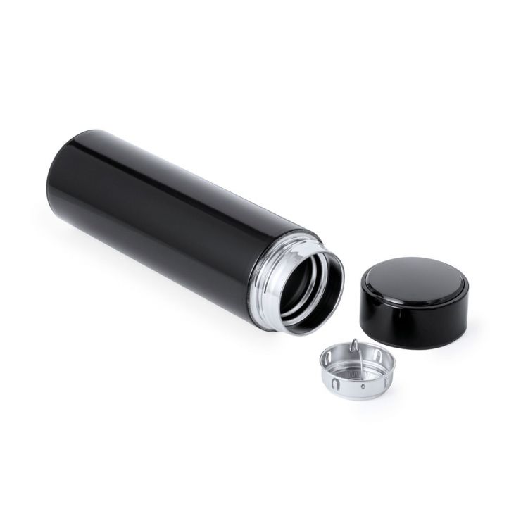 Hochwertige Doppelwand-Thermosflasche mit 450ml Fassungsvermögen, mit integriertem Tasttemperaturmesser im Deckel. Hergestellt aus Edelstahl, das außergewöhnliche Festigkeit und Haltbarkeit bietet. Deckel aus Edelstahl mit integriertem Infuser und BPA-frei. Batteriebetrieb (Knopfzelle im Lieferumfang enthalten), mit englischer und spanischer Bedienungsanleitung. Erhältlich in verschiedenen Farben und präsentiert in einer attraktiven Kraft-Design-Box.
