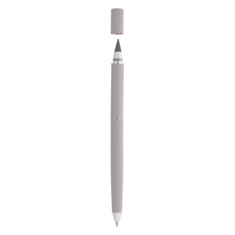 2in1 Drehkugelschreiber (blauschreibend) und tintenloser Stift aus Metall, verpackt in einer schwarzen Geschenkbox. Der tintenlose Stift hat eine Mine aus einer Metalllegierung, die das Papier zum oxidieren bringt.