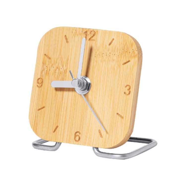 Tischuhr aus Bambus und Edelstahl. Betrieb mit 1 AA-Batterie, Lieferung ohne Batterie