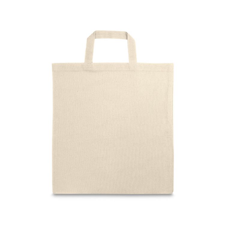 Tragetasche aus 100% Baumwolle (100 g/m²) mit 30 cm langen Henkeln. Das Produkt wurde nach einem zertifizierten Standard für die Verwendung von unschädlichen Substanzen in Textilien hergestellt, in natürlich farbe