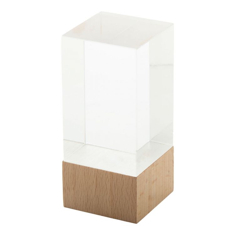 Trophäe aus Glas mit Boden aus Bambus. Verpackt in Kraftpapier-Geschenkbox