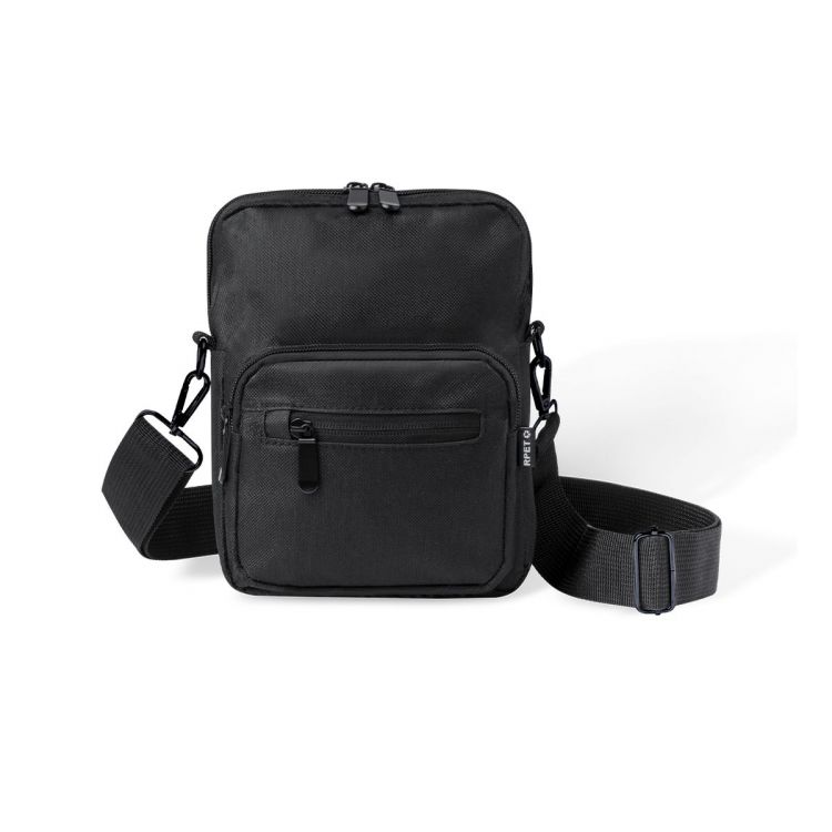 Umhängetasche aus RPET 600D-Polyester mit zentraler Reißverschlusstasche und doppeltem Reißverschluss sowie zwei Vorderfächern mit Schnellzugriff und Reißverschluss. Ausgestattet mit einem verstellbaren Riemen für mehr Komfort und einem RPET-Etikett. Einzeln in einer recycelten Tasche präsentiert. Umhängetasche aus RPET 600D-Polyester mit zentraler Reißverschlusstasche und doppeltem Reißverschluss sowie zwei Vorderfächern mit Schnellzugriff und Reißverschluss.