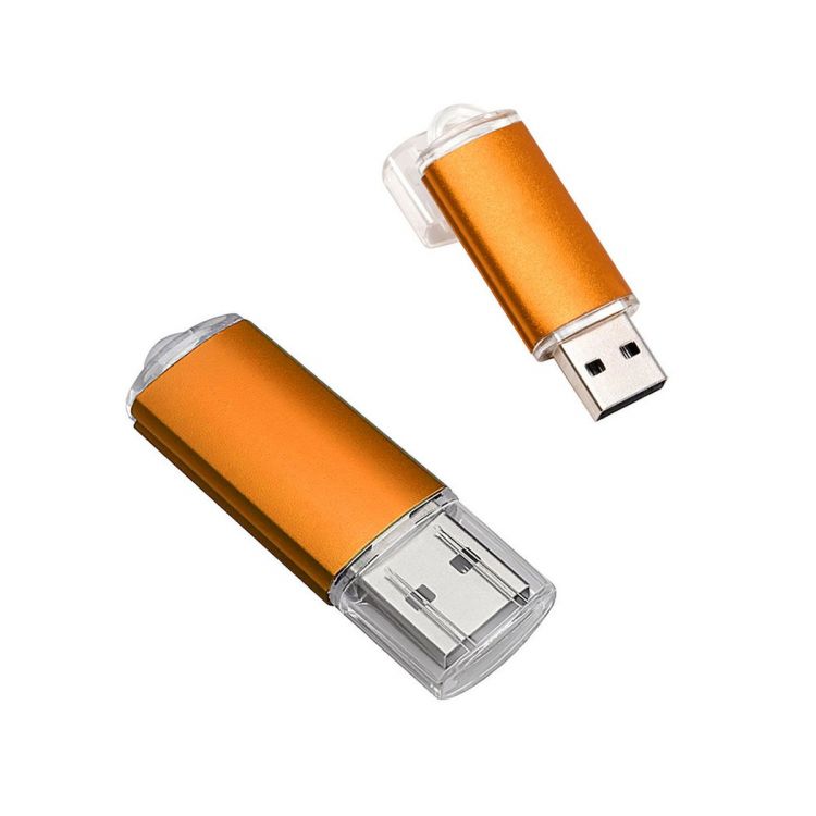 USB-Stick mit Speicherkapazität von 1, 2, 4, 8, 16, 32 GB, aus Kunststoff und Plastik. Man kann ihn am Schlüsselbund hängen. Gehäuse in vielen Farben erhältlich