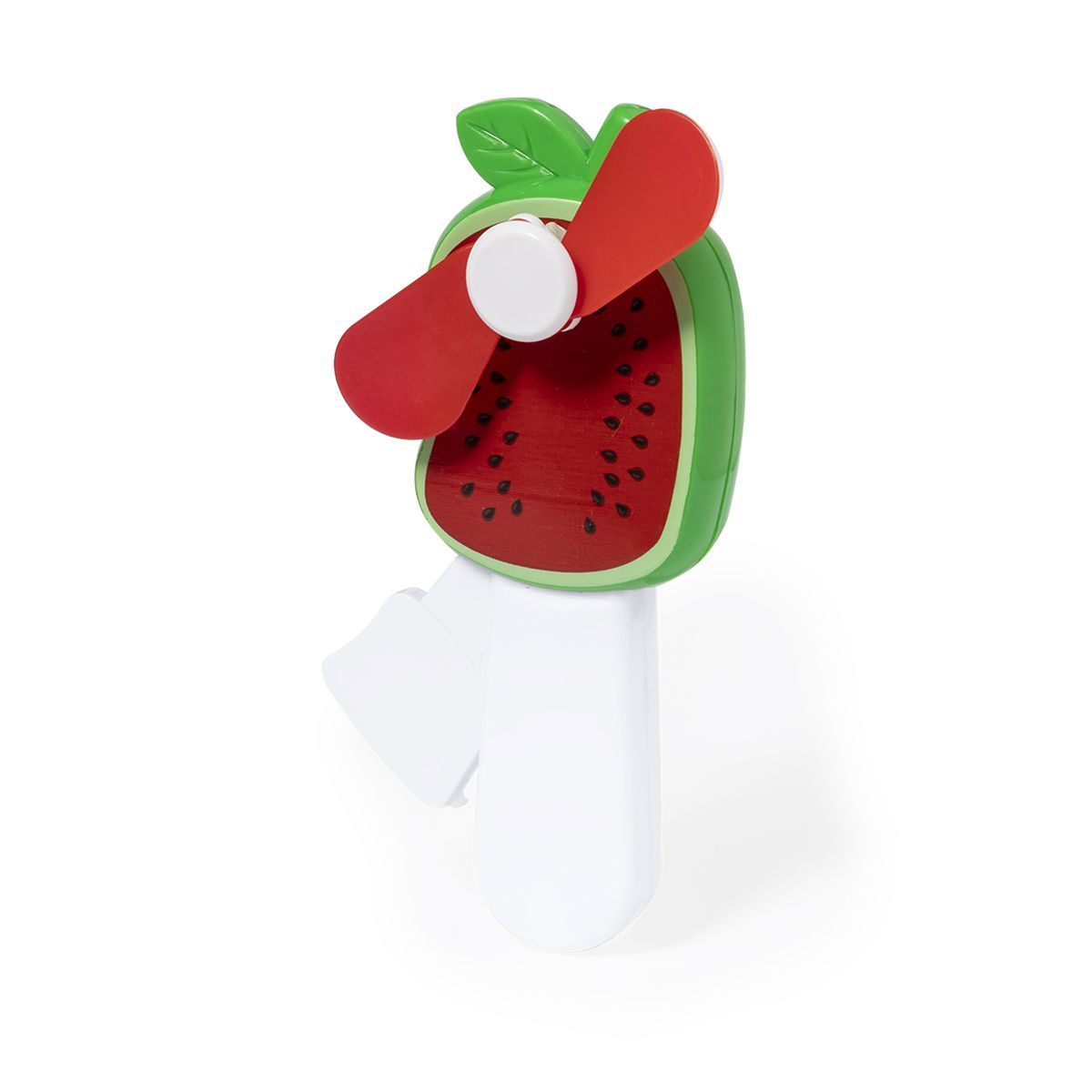 Ventilator in lustigen Fruchtformen, hergestellt aus widerstandsfähigem ABS. Manuelle Bedienung durch ständiges Drücken des im Griff integrierten Hebels zum Bewegen der Flügel. Erhältlich in den Designs Erdbeere, Ananas, Traube, Wassermelone oder Orange. Einzeln verpackt in einer recycelten Tasche.