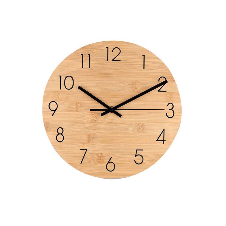 Wanduhr aus natürlichem Bambus, mit Metallziffern und Zifferblatt in schwarzer Farbe. Batteriebetrieb (1xAA nicht enthalten).Materialien wie Bambus fördern die Nutzung von natürlichen Rohstoffen, indem sie die Emissionen minimieren. Außerdem stammt Bambus von einer Pflanze mit großer Widerstandsfähigkeit und Vielseitigkeit, mit schnellem Wachstum und Regenerationsfähigkeit, was ihn zu einer hervorragenden Alternative zum traditionellen Holz macht. (natürlich farbe)
