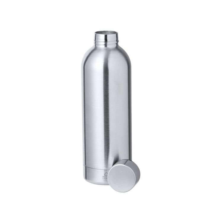 Doppelwandige Thermoflasche aus recyceltem Edelstahl mit einem Fassungsvermögen von 500 ml. Schraubdeckel für optimale Abdichtung und mit recyceltem Edelstahl-Logo. Präsentiert in einer attraktiven Kraft-Design-Box.Stahl ist eines der begehrtesten Materialien und findet sich fast überall, von Alltagsprodukten bis hin zu großen Konstruktionen. Er verfügt über unzählige Eigenschaften, darunter Langlebigkeit und ein hohes Maß an Wiederverwendbarkeit, was ihn zu einer hochgeschätzten Alternative für nachhaltige Lösungen macht. Richtig behandelt, lassen sich aus ihm neue Ressourcen mit unendlichem Nutzen gewinnen. (silber farbe)