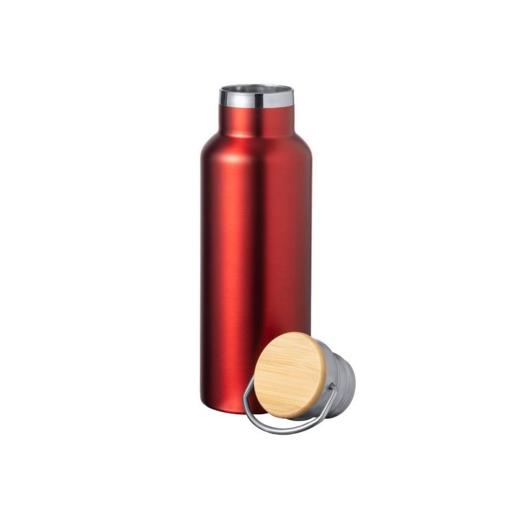 Thermoflasche mit 500 ml Fassungsvermögen, doppelwandig, aus Edelstahl. Inklusive Original-Schraubverschluss aus Edelstahl mit Bambusdetail und integriertem Griff. Erhältlich in einer breiten Farbpalette und präsentiert in einer individuellen Box mit Kraftpapier-Design.