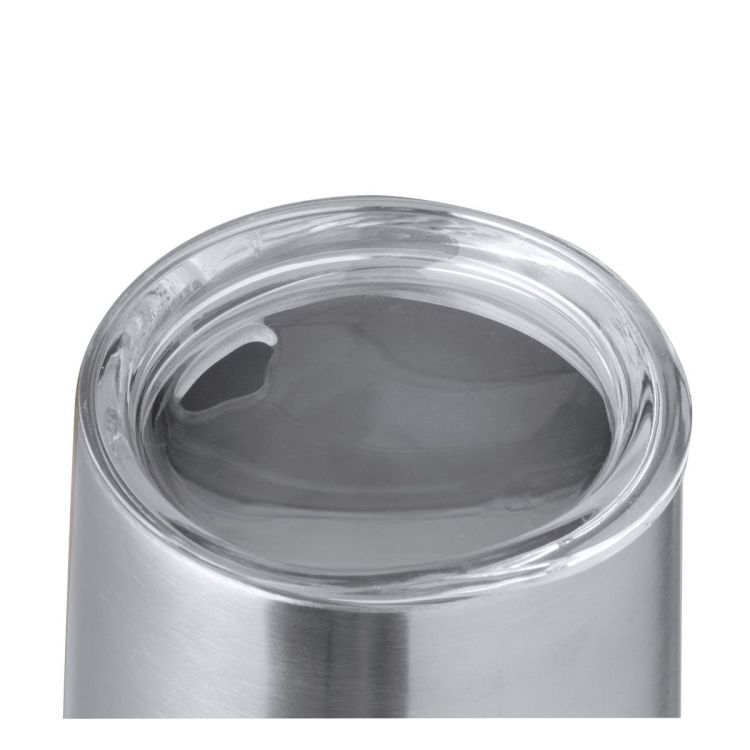 Thermobecher aus recyceltem Edelstahl, doppelwandig, 340 ml Fassungsvermögen. Inklusive transparentem Deckel mit Schnappverschluss und Spender. Es ist ideal für Ihren Schreibtisch, Tisch oder jede andere Oberfläche, auf der Sie in Ruhe Ihr Lieblingsgetränk genießen können. Mit Recycled Stainless Steel-Logo. Stahl ist eines der gefragtesten Materialien und kann fast überall gefunden werden, von Alltagsprodukten bis hin zu großen Konstruktionen. Mit unzähligen Eigenschaften, unter denen die Haltbarkeit und der hohe Wiederverwendungsgrad hervorzuheben sind, ist es eine geschätzte Alternative zu Nachhaltigkeitslösungen. Richtig behandelt, ermöglicht es neue Ressourcen, die unendlich genutzt werden.