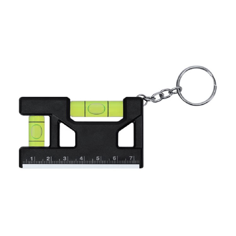 Mehrfach-Magnetnivelle-Schlüsselanhänger im Sockel aus ABS. Mit Lineal in Zentimetern. Waagerecht in horizontaler und vertikaler Position. Mit einem Chromring aus Metall. Kompakt in der Größe. (schwarz farbe)