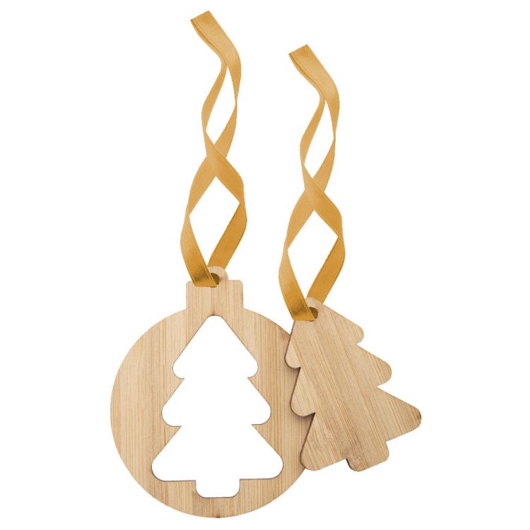 2 in 1 Weihnachtsbaumschmuck aus Bambussperrholz mit goldenen Schleifen (separat beiliegend)
