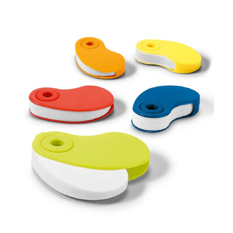 Weißes Radiergummi aus TPR mit farbiger PP-Schutzhülle. Ermöglicht es zu radieren ohne das Papier zu beschädigen. Abgerundetes Radiergummi. Ideal für die Schule