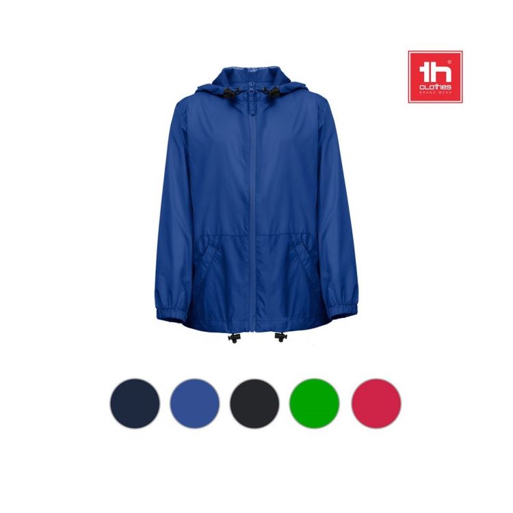 Wasserdichte Windjacke für Kinder (Unisex) aus 100% recyceltem Nylontaftgewebe (65 g/m²). Vordere Öffnung mit YKK®-Reißverschluss - eine Marke, die moderne Ausrüstung und hohe Qualitätskontrolle verwendet. Die Kapuze ist mit Mesh bezogen und hat Kordelzüge zum Zuziehen. Sie hat Ösen für eine gute Belüftung, einen elastischen Verschluss mit Stoppern am Saum und Seitentaschen mit Reißverschluss