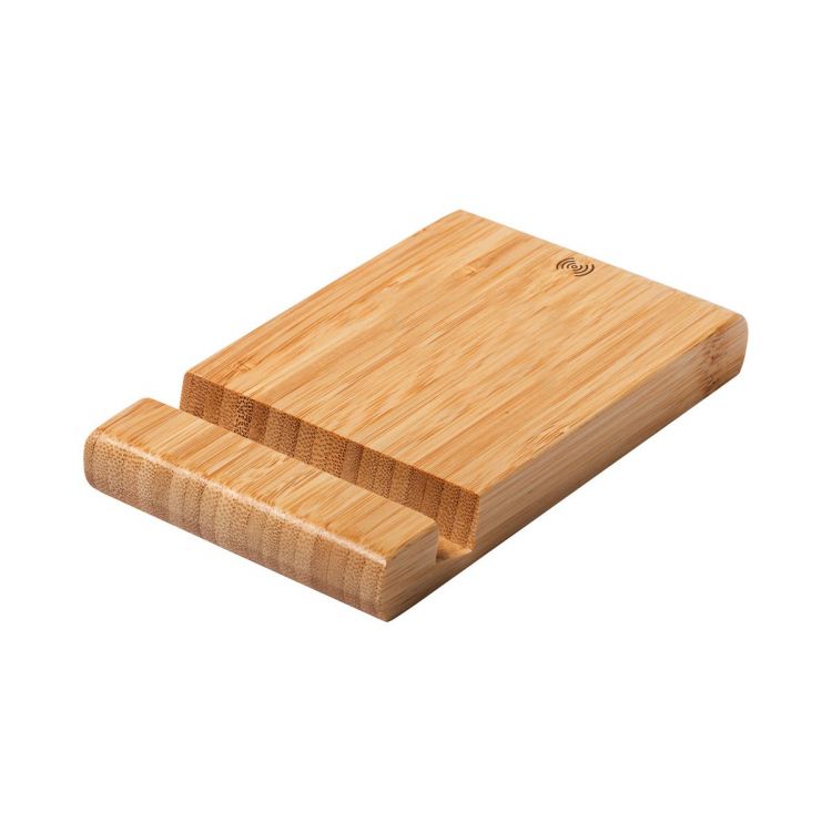 Handyhalter aus Bambus mit eingebautem Wireless-Charger (15 W). Inkl. USB-Ladekabel