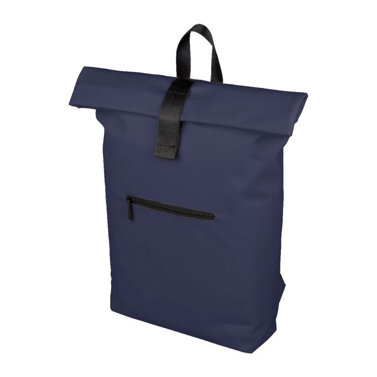 Rucksack aus recyceltem PU mit 19 Litern Fassungsvermögen, Rolltop-Verschluss und Klettverschluss. Mit kleiner Reißverschluss-Fronttasche, Innenfach für 16-Zoll-Laptops und Futter aus 210D recyceltem Polyester. Mit verstellbaren, belüfteten Schultergurten, Tragegriff und einem Recycling-Etikett im Inneren.