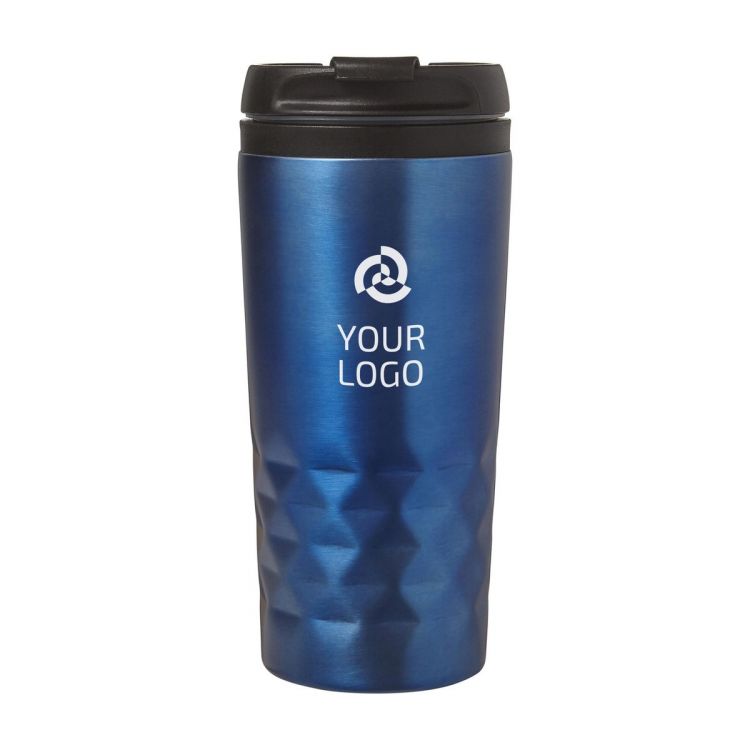 Thermobecher 'Brilliant' (300 ml) aus Edelstahl, doppelwandig, mit schwarzem Kunststoffdeckel (mit Klappverschluss) und Kunststoffinnenwand.